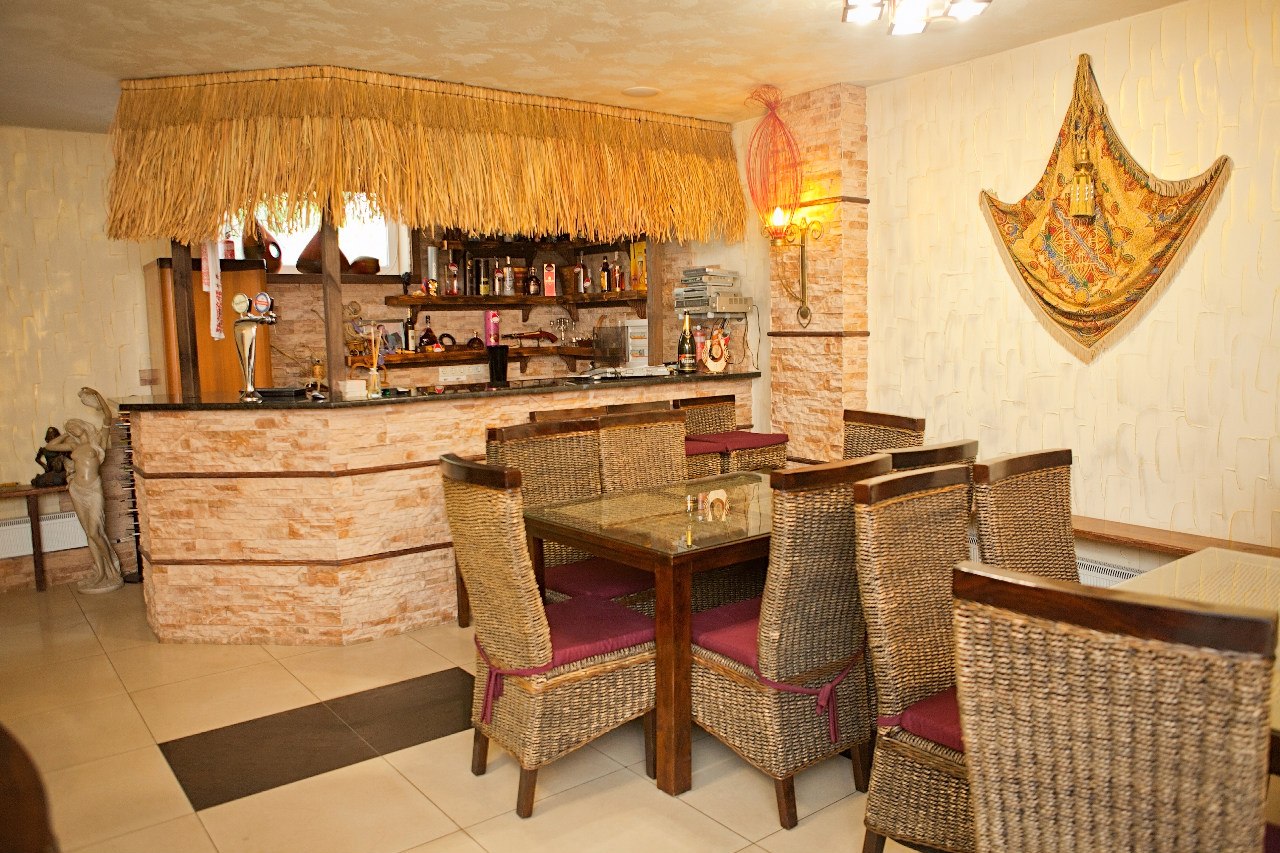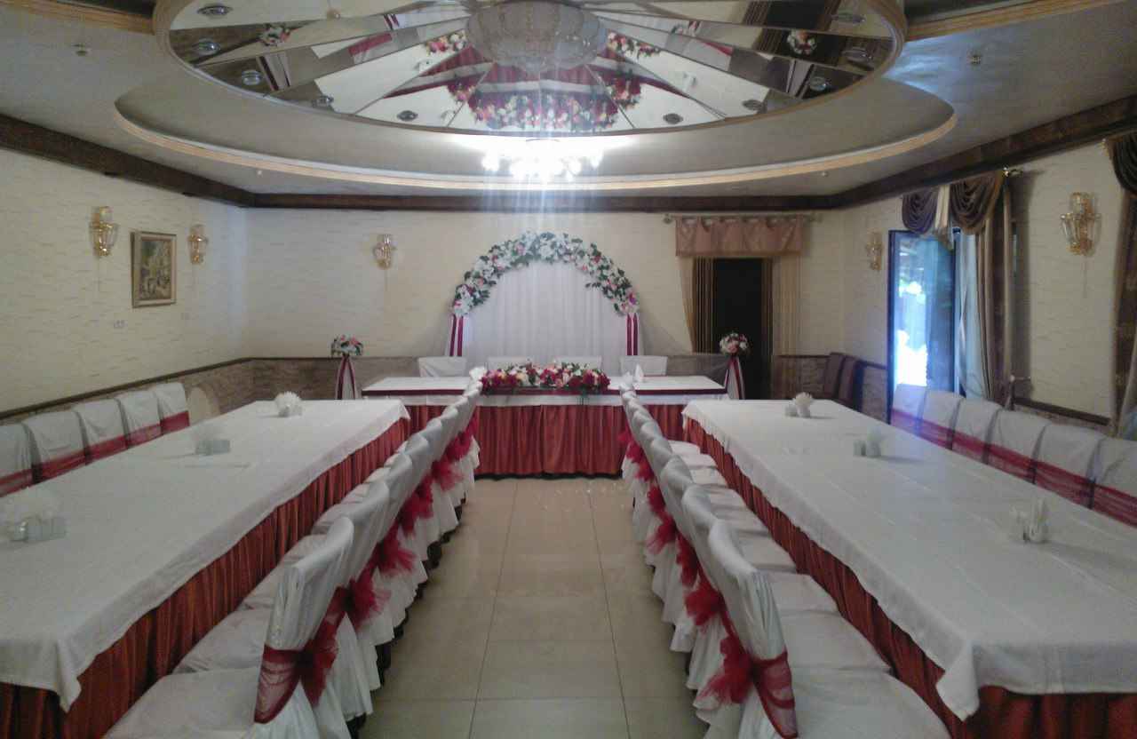 Территория нашего комплекса располагает большими пространствами, на которых расположены два прекрасных банкетных зала для любого торжества. Главный зал ресторана может вместить 80 гостей, а для фуршета до 150 гостей, также присутствует бильярдная зона, активный бар,детская площадка, летняя веранда, беседки. Еще один банкетный зал –вмещающий до 30 гостей – очень уютный, оформлен в пастельно-золотистых тонах. Отдельный вход, санузел и собственная гардеробная обеспечивают полную автономность от других гостей комплекса.